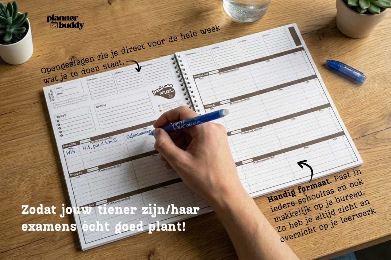 Bestel nu de Examenplanner en help je kind op weg naar het diploma – met meer overzicht, rust en vertrouwen.