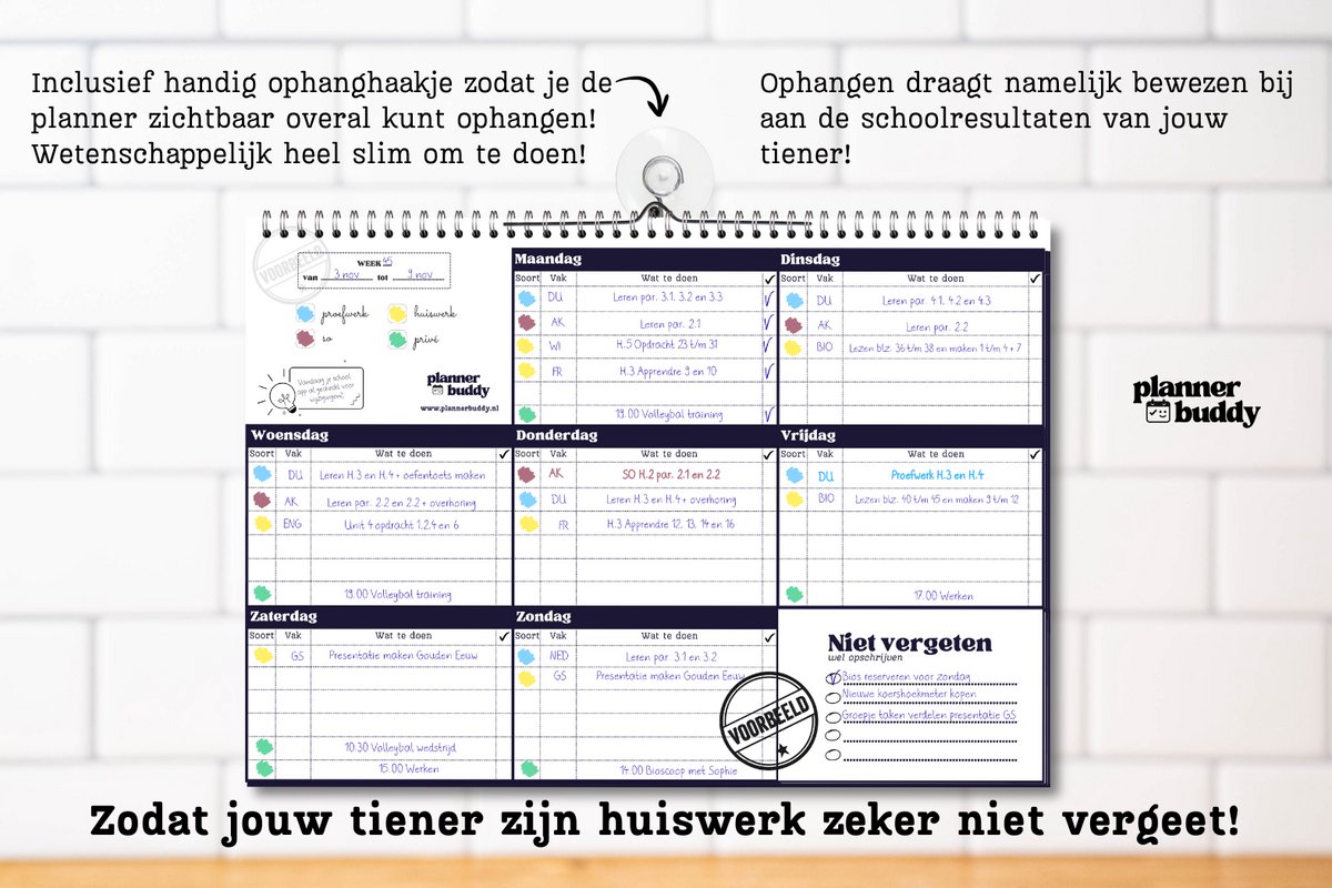 Waarom? Omdat hij is ontworpen met jongeren, getest in de praktijk en precies doet wat nodig is: overzicht geven op een manier die tieners snappen én gebruiken.